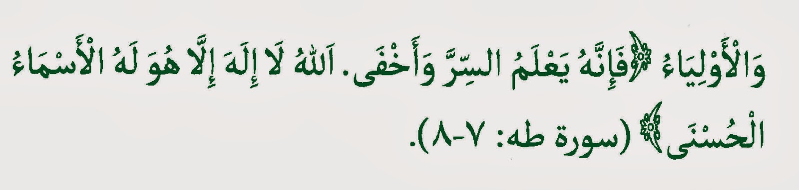 "Dia mengetahui rahasia dan yang lebih tersembunyi. (Dialah) Allah, tidak ada tuhan selain Dia, yang mempunyai nama-nama yang terbaik."